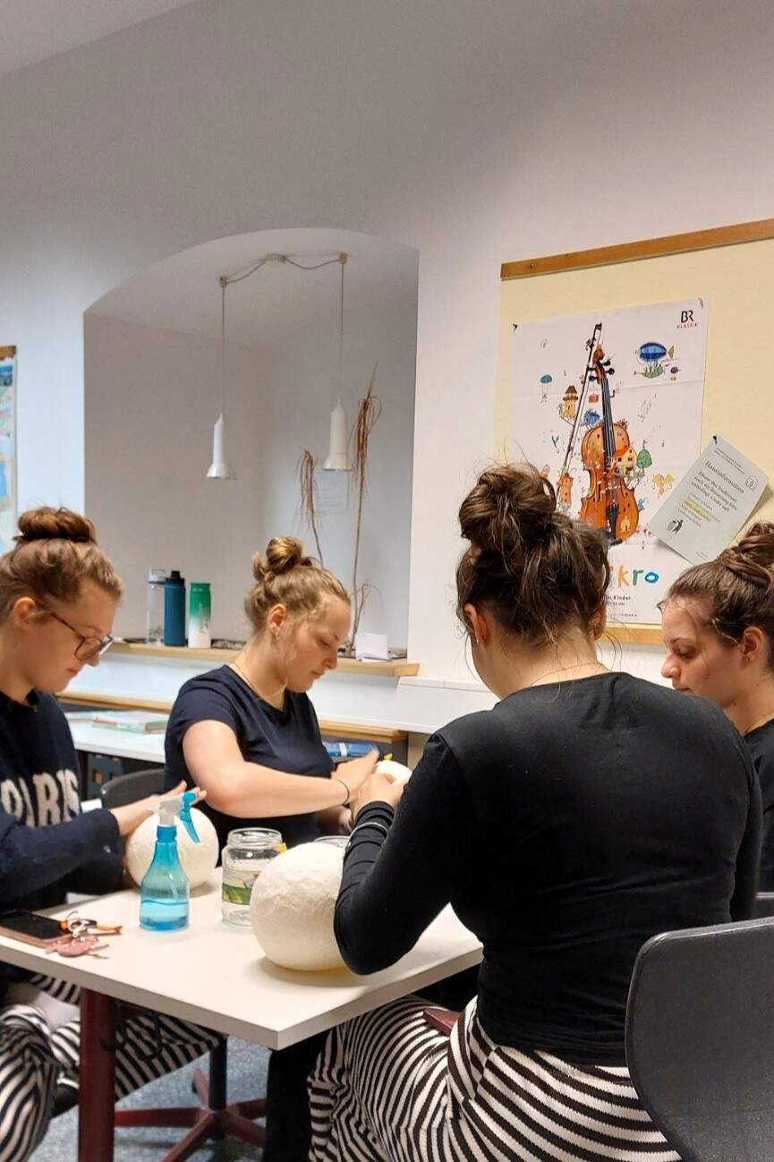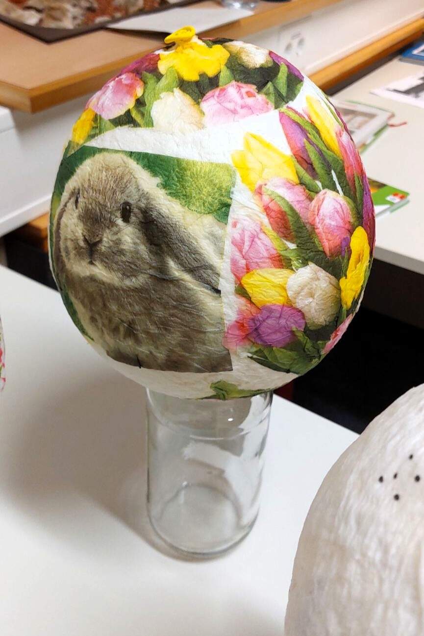 Ostern steht vor der Tür - auch im Internat des Gabrieli-Gymnasiums! Einige Internatsschülerinnen unterstützten zusammen mit Herrn Adlkofer und Frau Frey den Osterhasen, indem sie großen Ostereier aus Pappmaché und Serviettentechnik gestalteten. Auch kleine Geschenke für Muttertag wurden mit Ölpastellkreide auf kleine Leinwände kreiert.